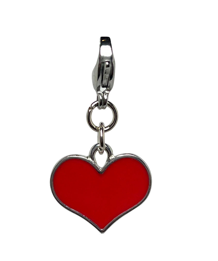 A beautiful red heart enamel charm. Can be attached to the small D-ring on our Klippo Collection apparel, or to a dog collar (a split ring is included with the charm to fit onto a collar). Size: 7/8"W x 5/8"H (size does not include the rings and lobster hook)